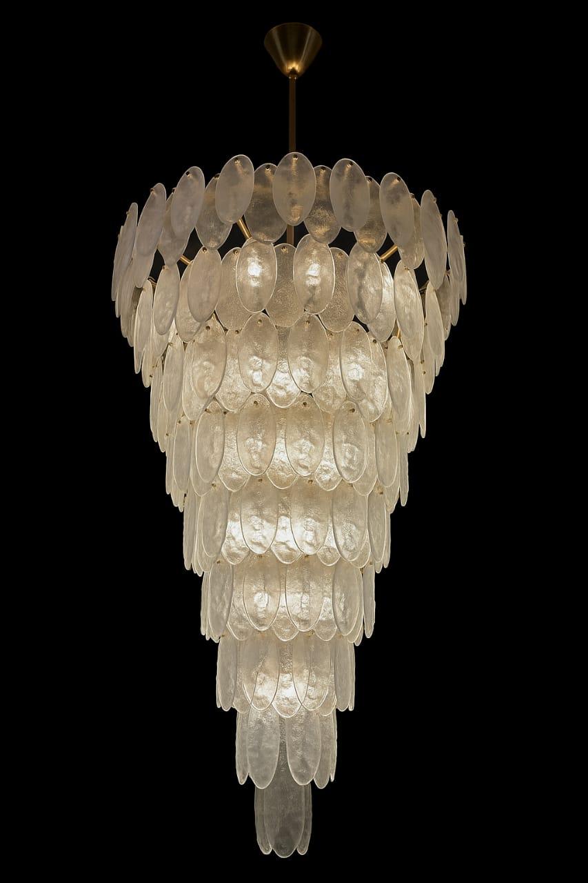 Refined and radiant, the Zopyros Frosted Glass Teardrop Chandelier captures the essence of understated luxury. Shaped in an elegant inverted tiered form, this chandelier features rows of intricately textured frosted glass ovals, each delicately suspended to reflect and diffuse light with a soft, ethereal glow. The design evokes the grace of cascading water or a frozen sculpture — a true centerpiece that brings depth and sophistication to any space. Whether gracing a modern entryway or a classic dining room, this chandelier is a testament to Zopyros' commitment to creating timeless elegance.